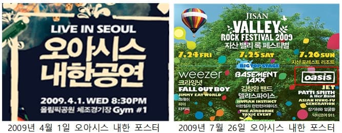 2009년은 OASIS를 사랑하는 한국 팬들에게 정말 잊지 못할 한 해였습니다. 4월 1일 올림픽공원 체조경기장에서 두 번째 내한공연이 열렸고, 7월 26일에는 <지산 밸리 록 페스티벌>에서 헤드라이너로 세 번째 내한공연이 열렸기 때문입니다.