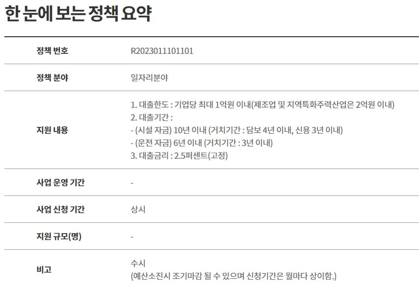 • 지원금액: 기업당 최대 1억 원 이내(제조업 및 지역특화주력산업은 2억 원 이내)
